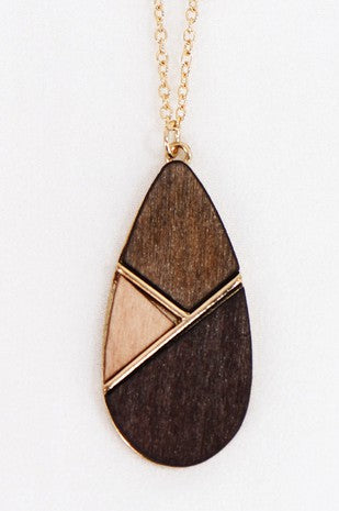 Multicolor Wooden Teardrop Pendant Necklace
